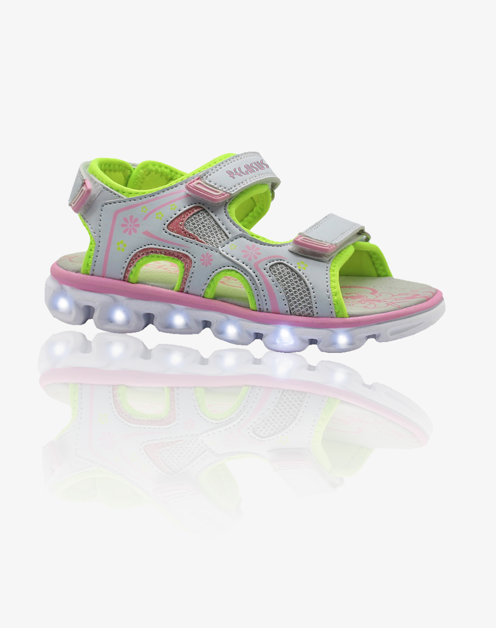 - These kids' sandals feature light-up soles that blink with every step