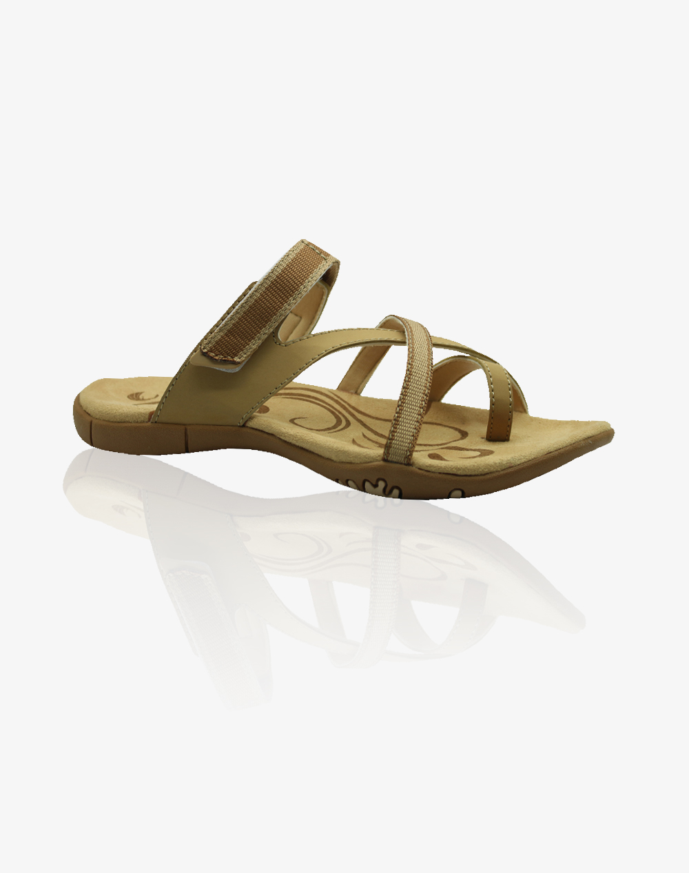 A comfort sandal with clean lines and a sleek look. Light cushioned synthetic insole with contouring and arch support,comfortable, stylish, and good quality.
