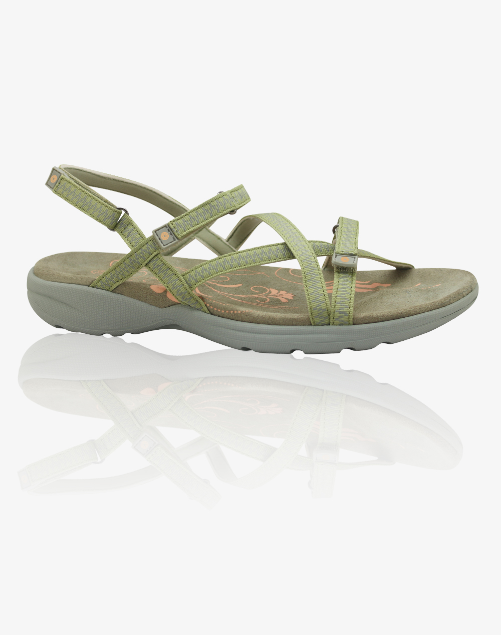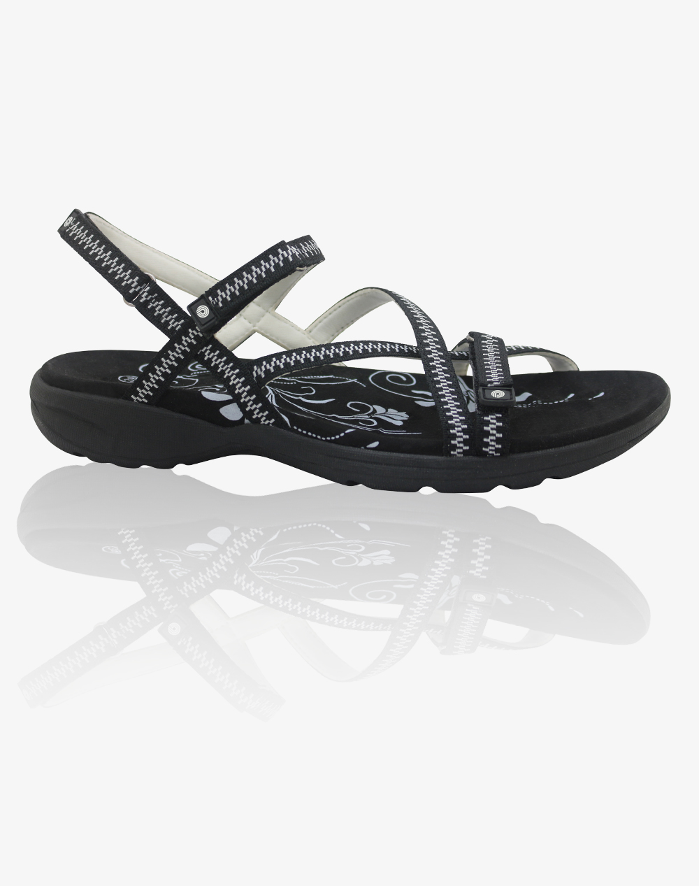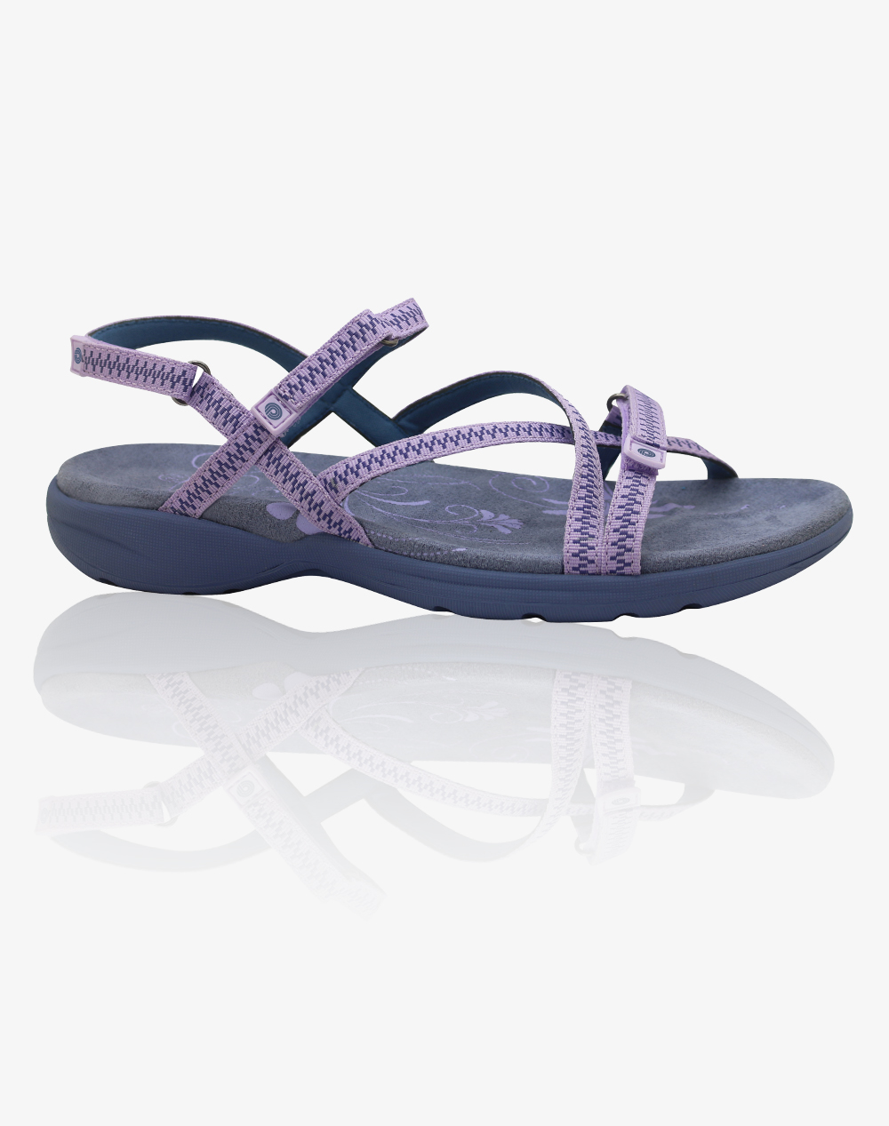 - Cushioned and contoured comfort footbed